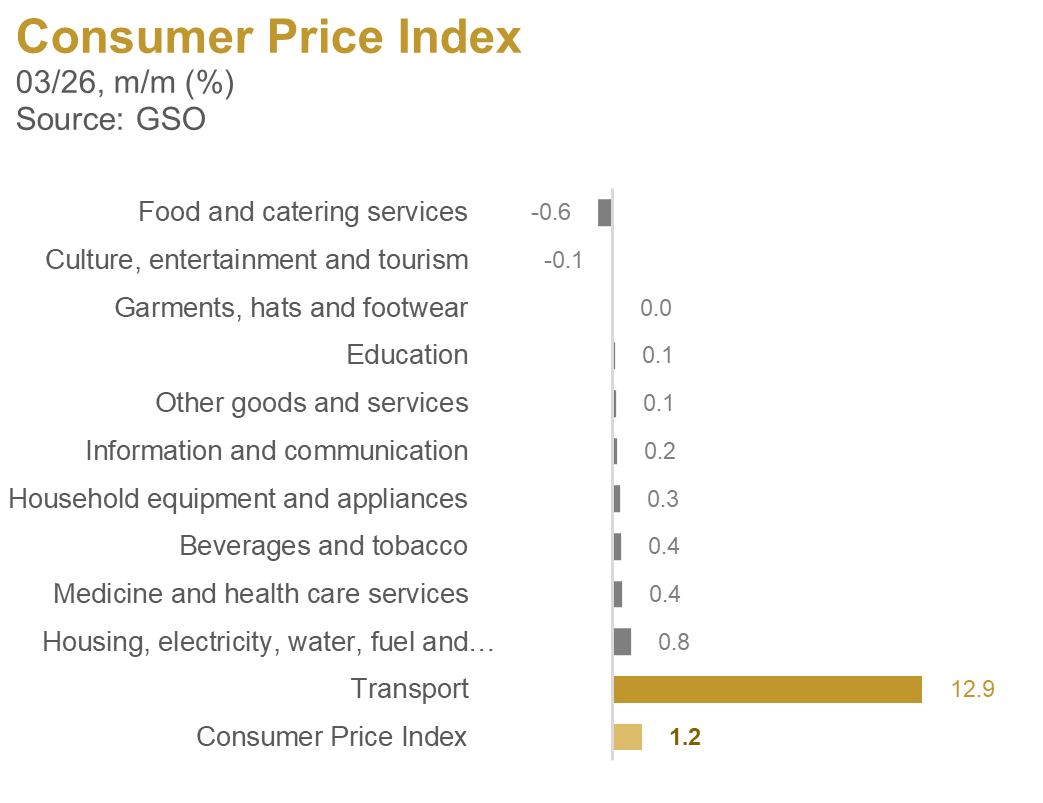 Another catalyst for the ‘K-shaped’ thesis lies in the disconnect between public perception and official CPI data. A breakdown of the GSO’s basket reveals three points: (1) Food and catering services carry an outsized weight of 33.56%; (2) Housing and utilities are bundled into a single category, representing a mere 18.82%; and (3) a lack of granularity, with no clear distinction between urban and rural inflation dynamics.