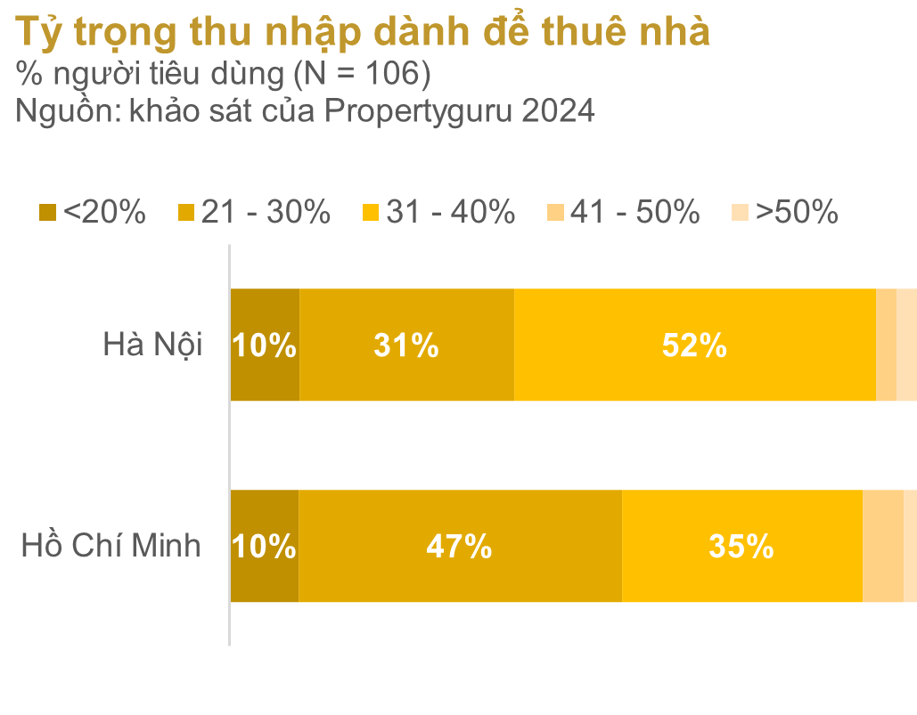 Tại Việt Nam, chỉ có mức chi phí sử dụng như tiền thuê nhà hoặc khấu hao tài sản nhà ở được đưa vào giỏ hàng hóa CPI mà không tính đến các chi phí sở hữu nhà ở như giá đất, giá căn hộ hay chi phí lãi vay khi mua nhà. Áp dụng phương pháp này có thể tạm thời giúp ích với việc dữ liệu cho thuê còn chưa đầy đủ, chưa cập nhật và chưa tin cậy đồng thời giúp tránh sự yếu tố đầu cơ gây nhiễu dữ liệu CPI. Tuy nhiên, tại một quốc gia Á Đông nặng tư tưởng “an cư lập nghiệp”, hộ gia đình coi ngôi nhà là di sản và tất cả tâm huyết của mình, việc này có thể làm lệch đi hoàn toàn thực tế chi phí sinh hoạt và áp lực tâm lý của hộ gia đình gánh phải (giá nhà/thu nhập tại Việt Nam đang ở mức nghẹt thở nhất thế giới – 27.3x).