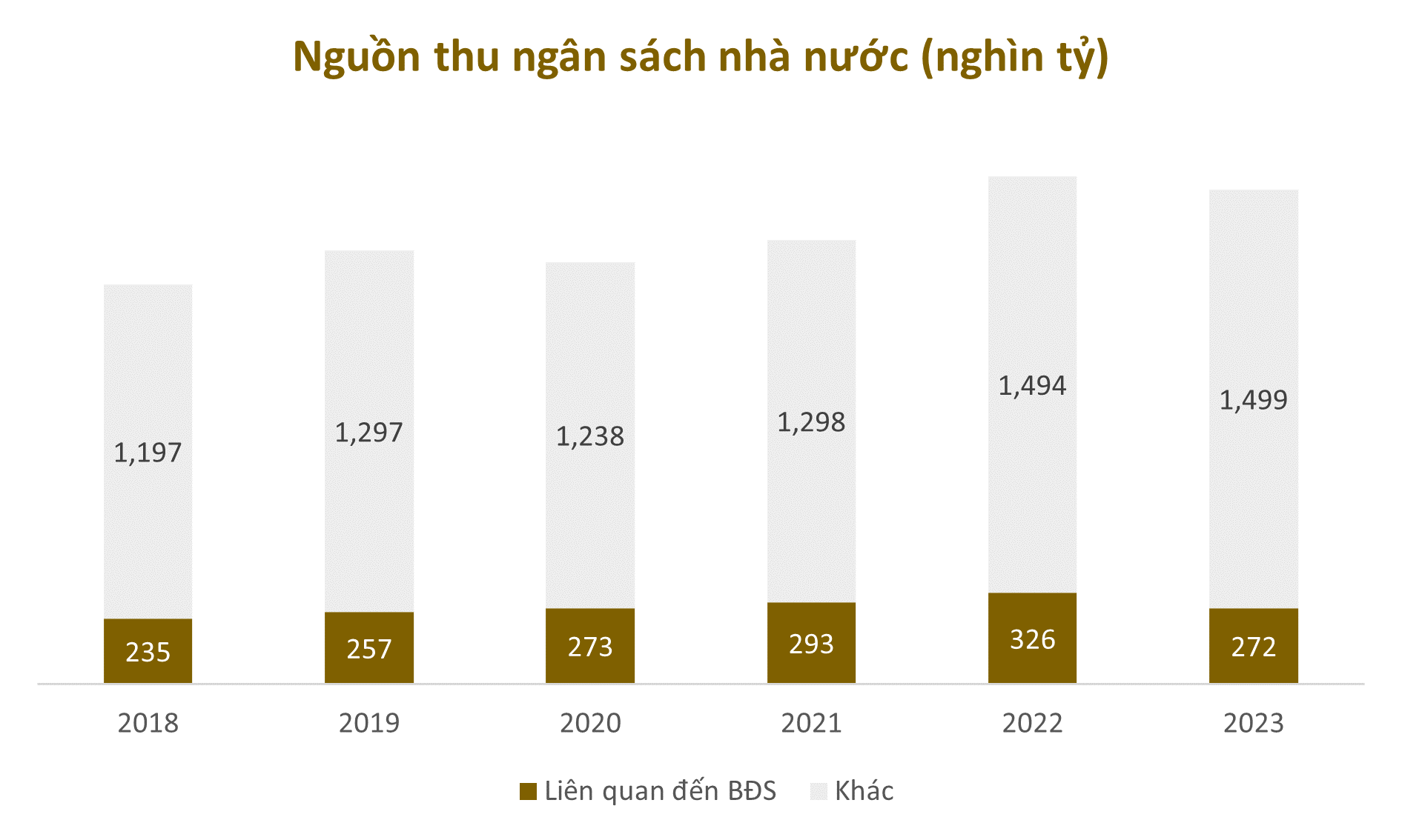 Trong đó, riêng tiền sử dụng đất chiếm tới 56,9% tổng nguồn thu từ bất động sản, cho thấy tầm quan trọng của nguồn thu ổn định này cho ngân sách nhà nước. Ngoài ra, các loại thuế khác liên quan đến bất động sản — như thuế VAT đánh trên sản phẩm cuối cùng và thuế thu nhập doanh nghiệp từ các chủ đầu tư — cũng đóng góp đáng kể, mặc dù khó xác định chính xác quy mô.
